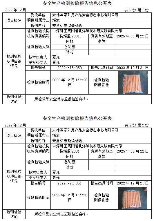 安全生產(chǎn)檢測(cè)檢驗(yàn)報(bào)告信息公開(kāi)表(2022年12月)