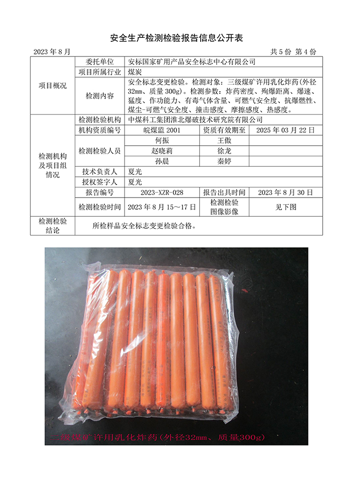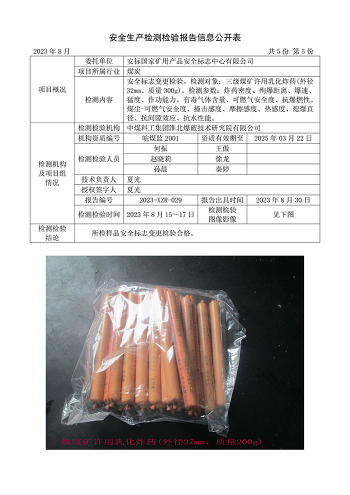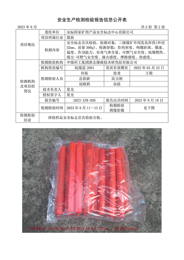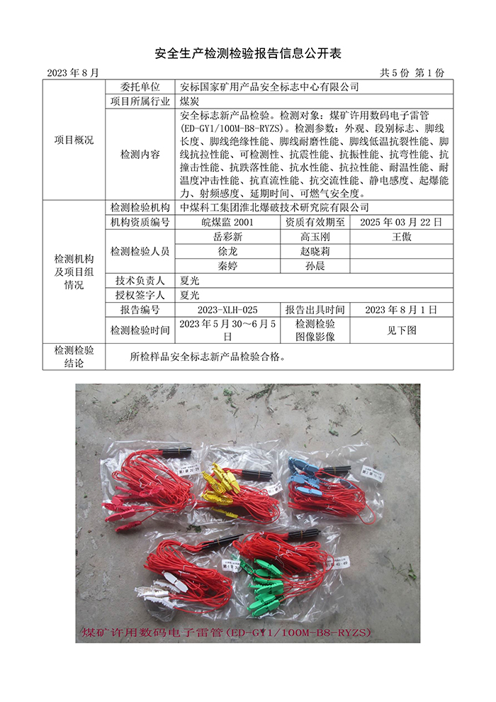 安全生產檢測檢驗報告信息公開表(2023年8月)