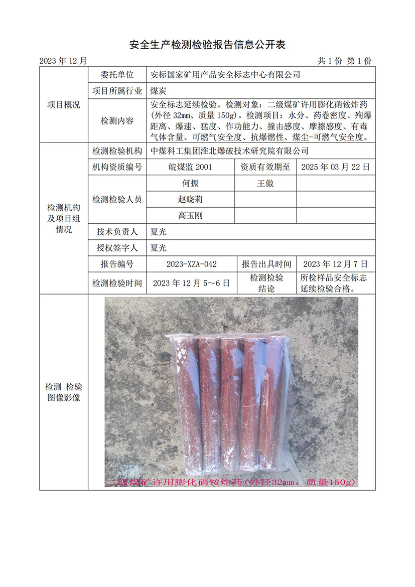 安全生產(chǎn)檢測檢驗報告信息公開表(2023年12月份)
