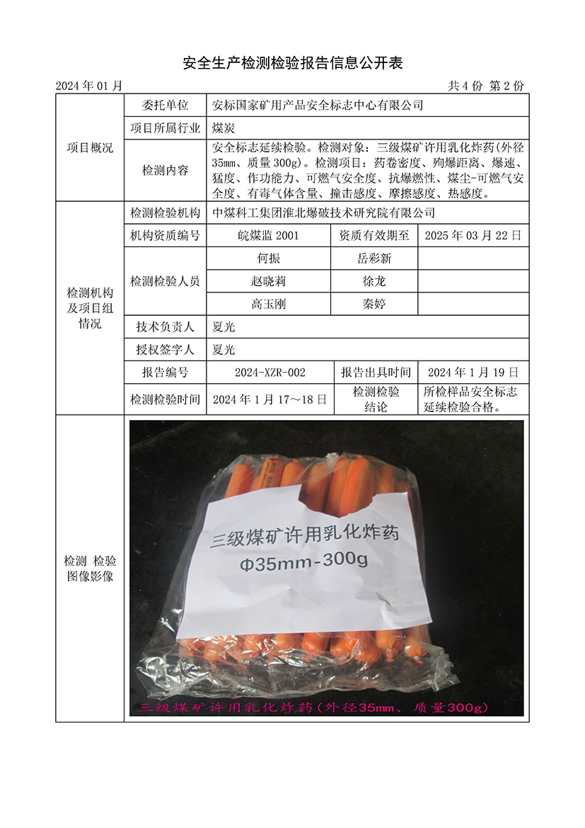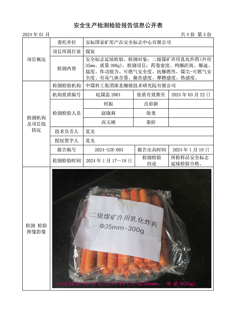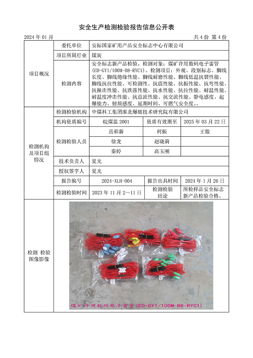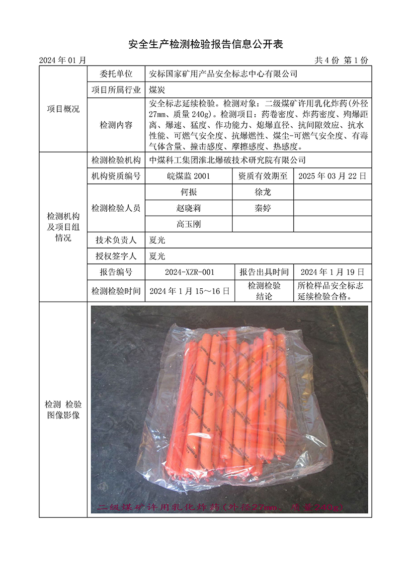 安全生產檢測檢驗報告信息公開表(2024年1月份)