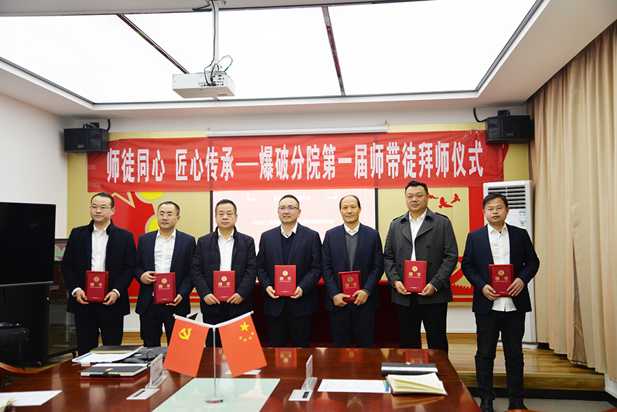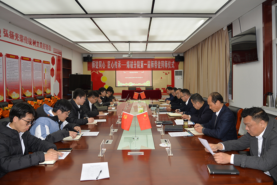 為大力弘揚(yáng)工匠精神,努力構(gòu)建爆破分院人才儲(chǔ)備“雁陣格局”,更好地傳承和發(fā)揚(yáng)“傳幫帶”精神,進(jìn)一步營(yíng)造濃厚的學(xué)習(xí)氛圍,切實(shí)提高青年員工專(zhuān)業(yè)水平和職業(yè)素養(yǎng),12月20日下午,爆破分院在二樓會(huì)議室隆重舉行了首屆導(dǎo)師聘任暨拜師儀式,劉治兵副院長(zhǎng)主持會(huì)議,陳金華院長(zhǎng)等出席會(huì)議。