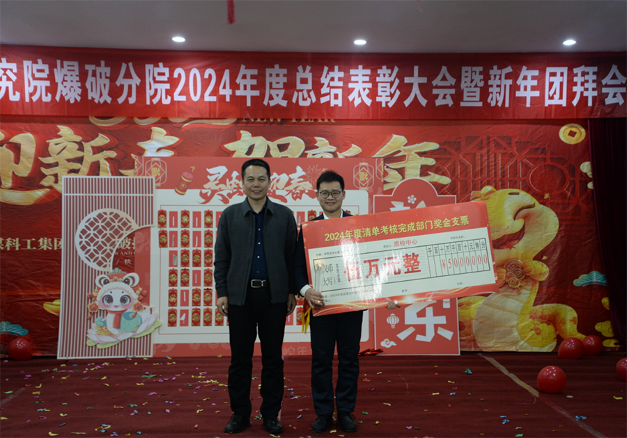 1月17日下午,爆破分院召開2024年度總結(jié)表彰暨新春團(tuán)拜會。重慶研究院黨委副書記、總經(jīng)理李建國、總工辦主任董鋼鋒、經(jīng)營管理部主任陳東出席會議,與分院全體員工齊聚一堂、恭賀新春。