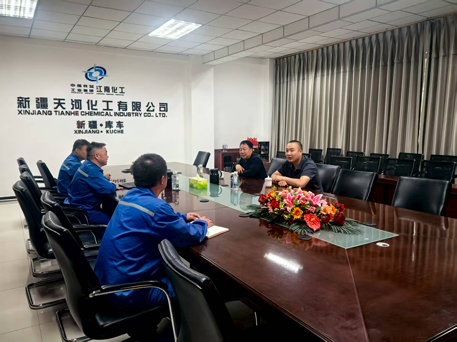 7月13日,李勇副院長一行到達(dá)新疆天河化工有限公司庫車分公司。庫車分公司總經(jīng)理楊小四介紹了公司的發(fā)展戰(zhàn)略、產(chǎn)業(yè)布局、生產(chǎn)經(jīng)營等情況,雙方圍繞項目合作、市場變化及行業(yè)發(fā)展趨勢等展開深入探討,雙方一致表示,將充分發(fā)揮各自優(yōu)勢,探索更多合作機(jī)會,共同開創(chuàng)互利共贏、協(xié)作發(fā)展的新局面。