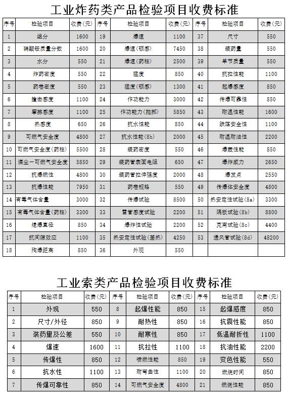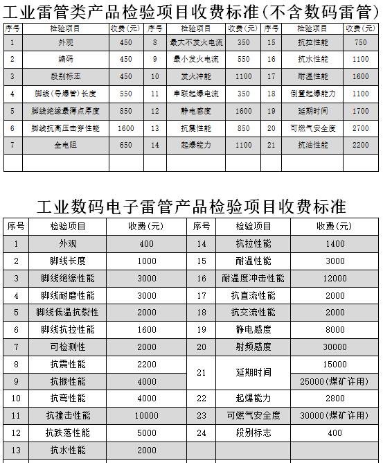 檢測檢驗收費標準按現(xiàn)行自律性收費標準中相應檢驗項目要求執(zhí)行,各檢驗項目單項收費標準如下: